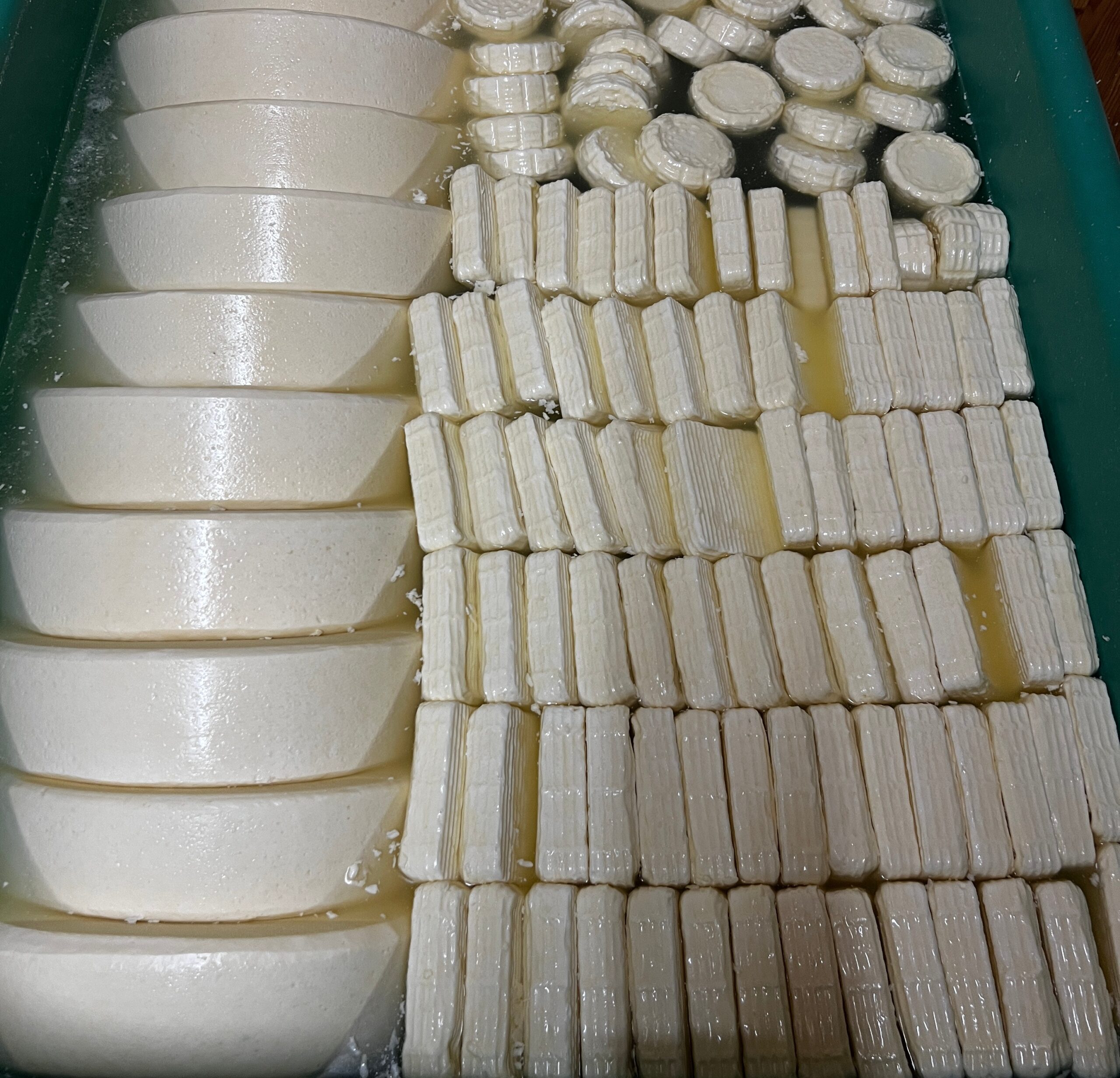 - Розсільні сири: дозрівають і зберігаються у концентрованому сольовому розчині (розсолі), що надає їм характерного гострого смаку та щільної текстури. Ці сири не мають твердої скоринки і вирізняються підвищеним вмістом солі: Фета, Бринза, Сулугуні, Чечіль, Лора та інші види, що традиційно виготовляються з коров’ячого, овечого чи козячого молока.