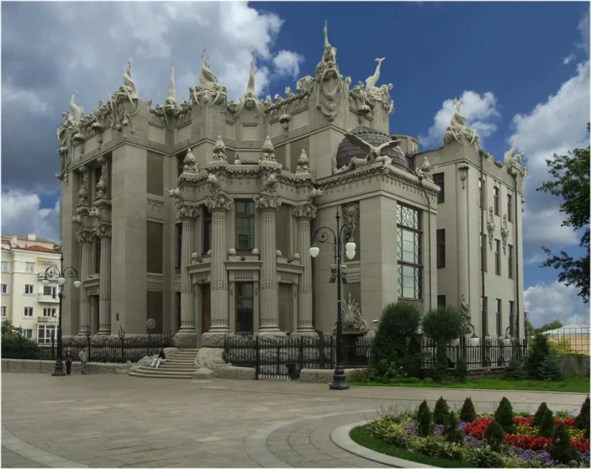 Спочатку африканських тварин, жаб, риб, дельфінів і русалок проєктом не передбачалося. Але саме ці декоративні елементи, виконані італійським скульптором Еліо Саля, стали «візитівкою» унікальної київської будівлі, де нині знаходиться мала резиденція Президента України. І навіть тоді зодчий не збільшив бюджет: матеріал для скульптур акціонер цементного заводу брав на підприємстві замість дивідендів.